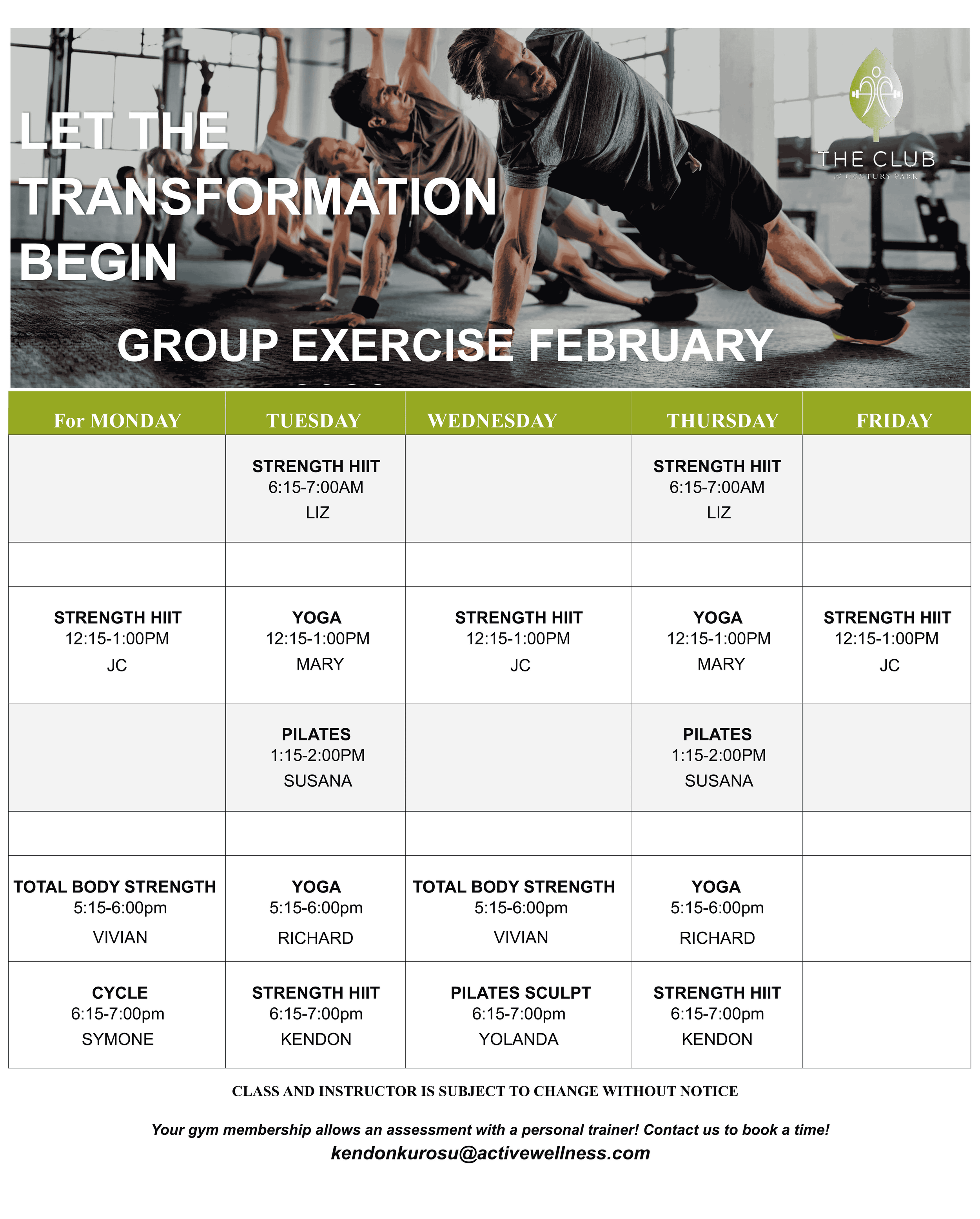 For information and inquiries, please email theclubatcenturypark@activewellness.com or call 310.226.7420